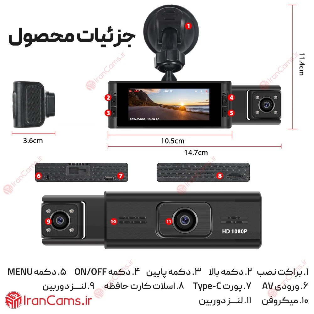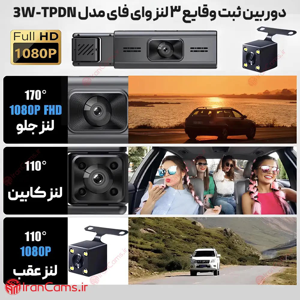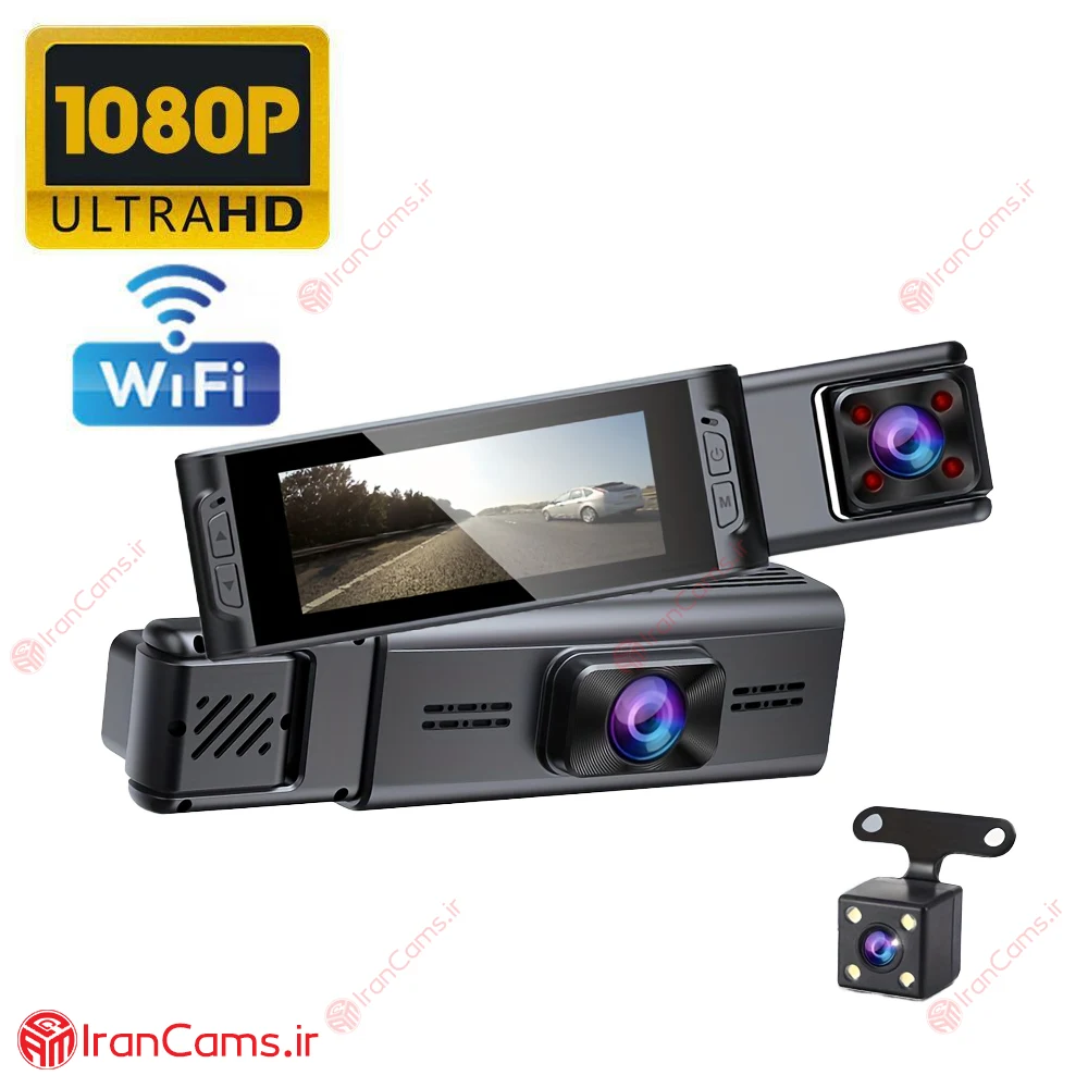 دوربین ثبت وقایع خودرو 3 لنز مانیتوردار وای فای مدل 3W-TPDN
