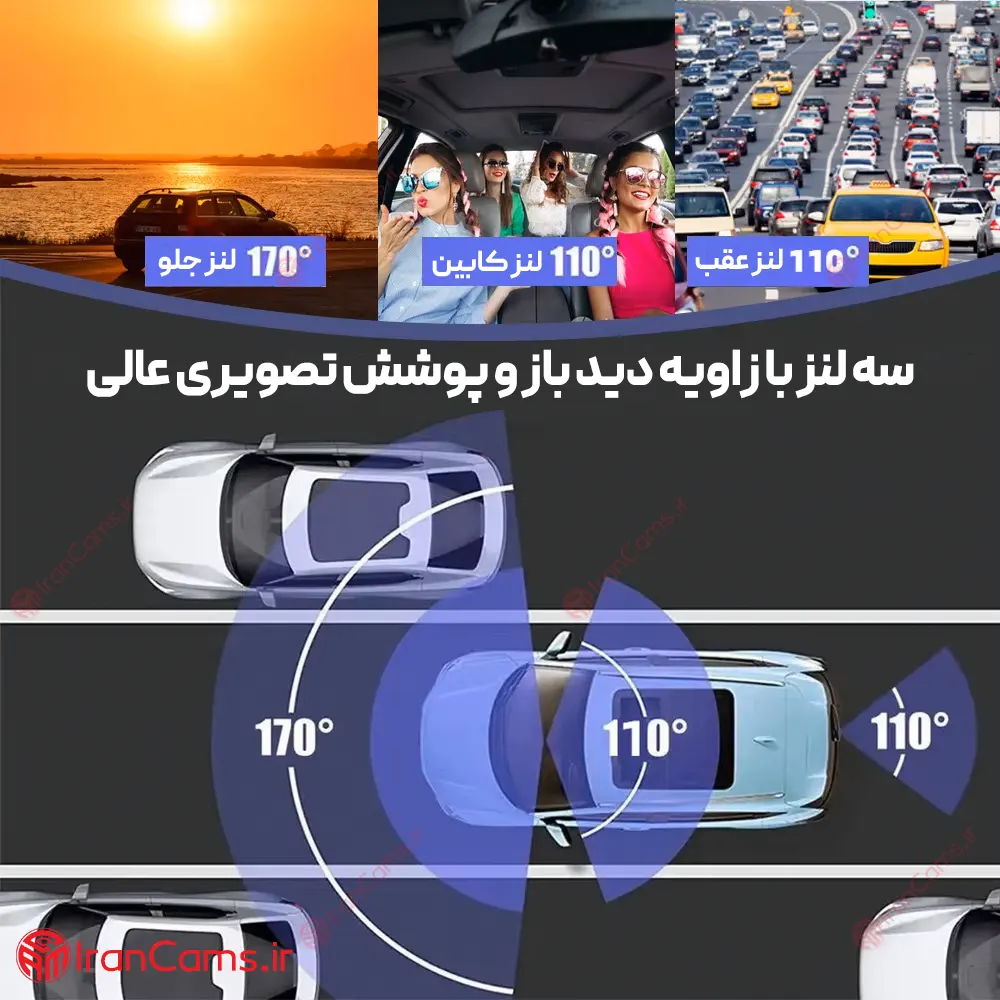 - زاویه دید: 170 درجه در دوربین جلو و 110 درجه در دوربین کابین و دوربین عقب