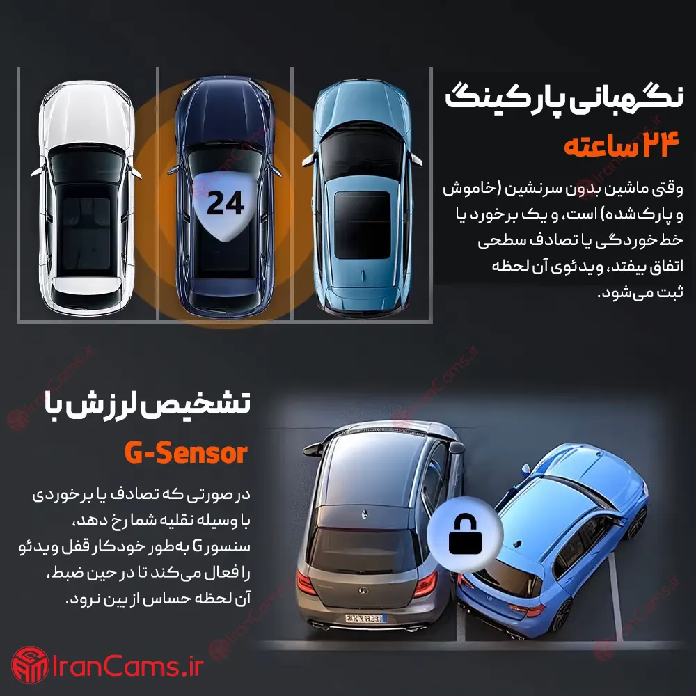 - زاویه دید: 120 درجه در دوربین جلو و 110 درجه در دوربین های کابین و دوربین عقب