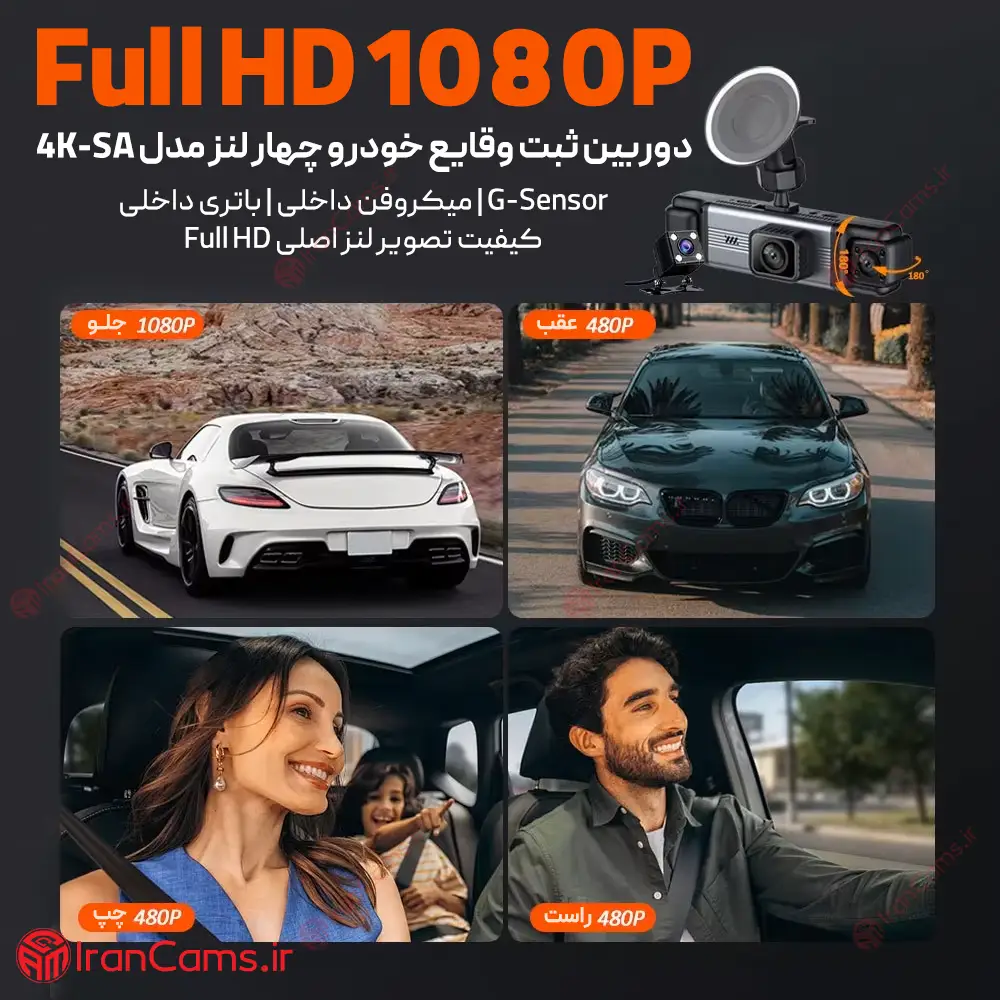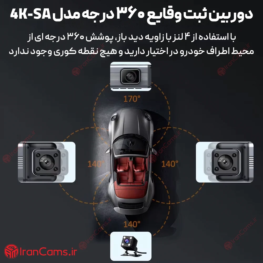 دوربین ثبت وقایع خودرو 360 درجه 4 لنز مانیتوردار مدل 4K-SA