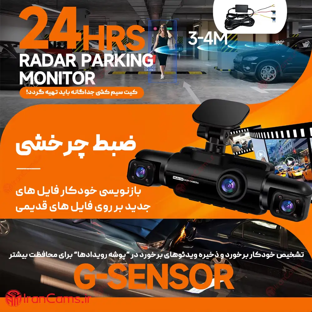 دوربین ثبت وقایع خودرو 4 لنز مانیتور دار وای فای