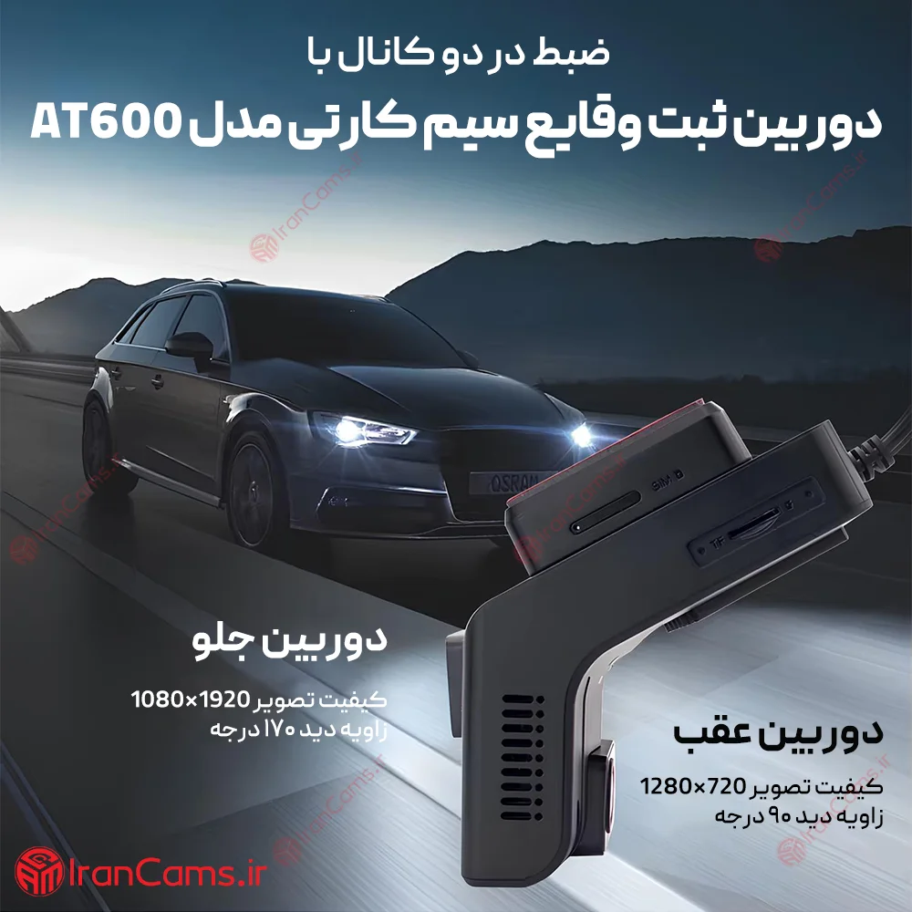 دوربین ثبت وقایع خودرو سیم کارت خور مدل AT600 (دو دوربین)