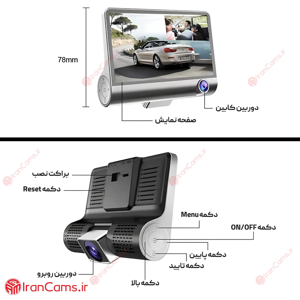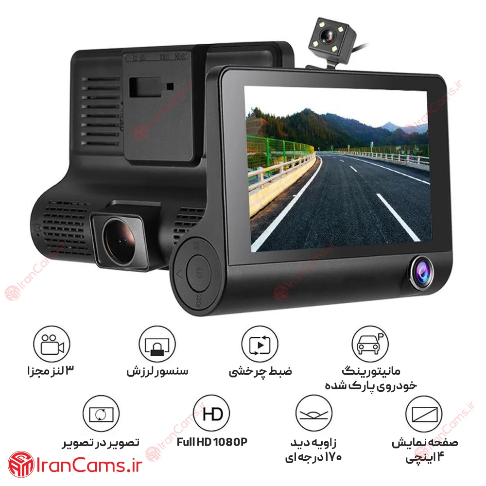 دوربین ثبت وقایع خودرو 3 لنز مانیتوردار مدل BW-3L