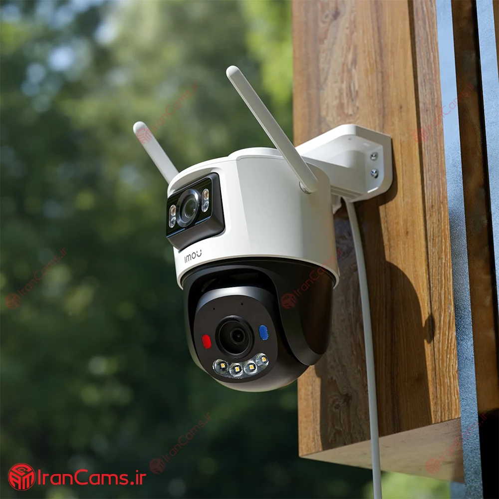 نظارت همزمان دو نما (Dual-View): به لطف دو لنز مجزا، امکان مشاهده همزمان دو دیدگاه متفاوت از یک نقطه نصب وجود دارد — مثلاً یک نمای کلی ثابت و یک نمای نزدیک/قابل حرکت.