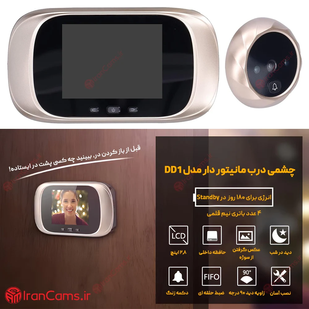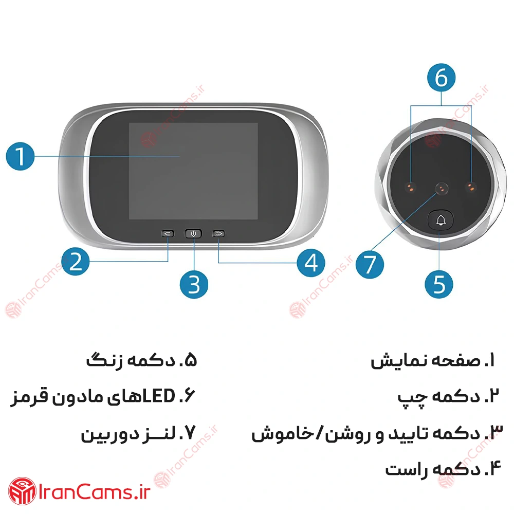 - قابلیت ضبط صدا: ندارد (بلندگو برای صدای زنگ در و راهنمایی های دستگاه دارد)