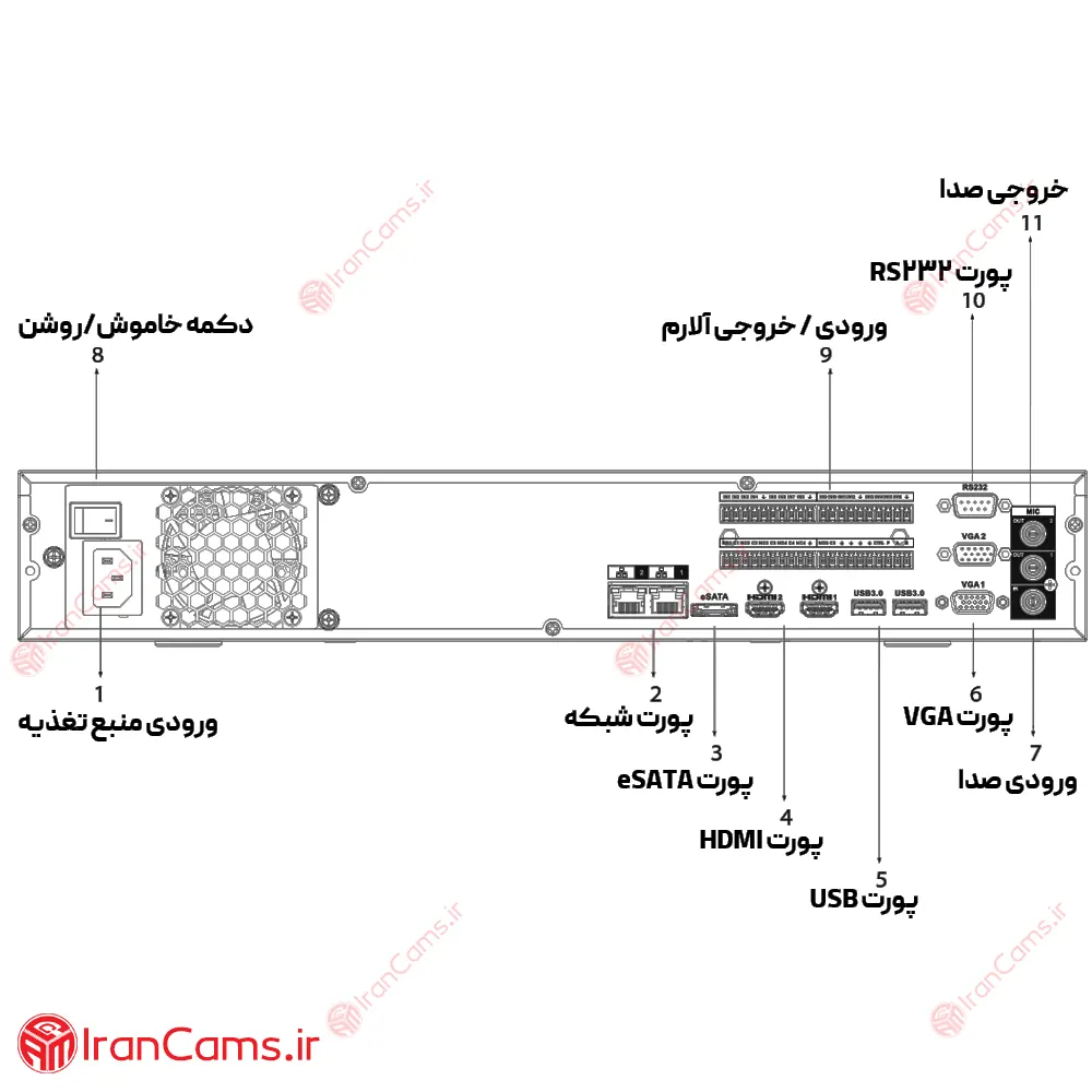 دستگاه ان وی آر داهوا DHI-NVR5432-EI از پورت های متنوعی برای اتصال به دستگاه های خارجی و ارائه قابلیت های مختلف برخوردار است. در ادامه به شرح تعداد و نوع هر پورت می پردازیم: