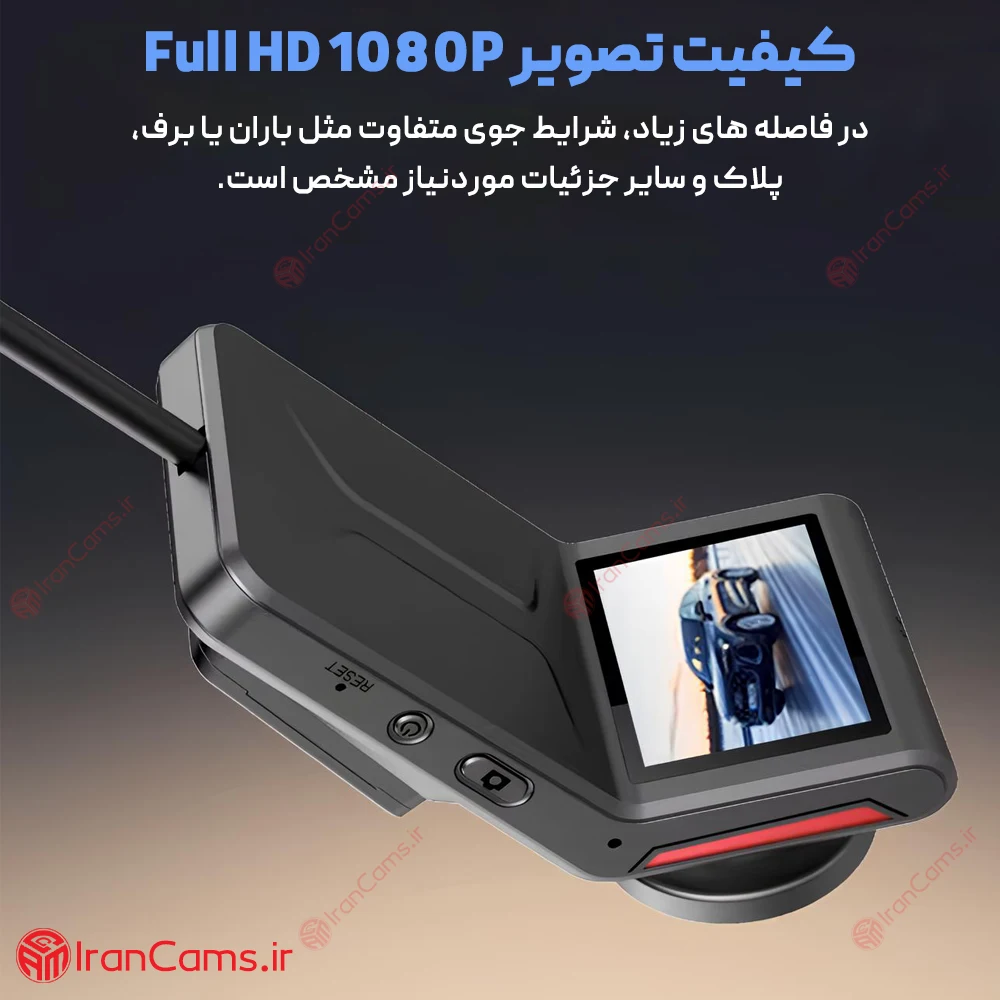 دوربین جلو با وضوح 1080×1920 پیکسل (Full HD) تصاویر را با جزئیات بالا و شفافیت مناسب ثبت میکند و برای ضبط پلاک خودروها و وقایع جادهای عملکرد دقیقی دارد. دوربین عقب نیز با رزولوشن 480×640 پیکسل، نمای قابل قبولی از پشت خودرو ارائه میدهد و در کنار دوربین جلو، پوشش کاملی از مسیر رانندگی فراهم میکند.