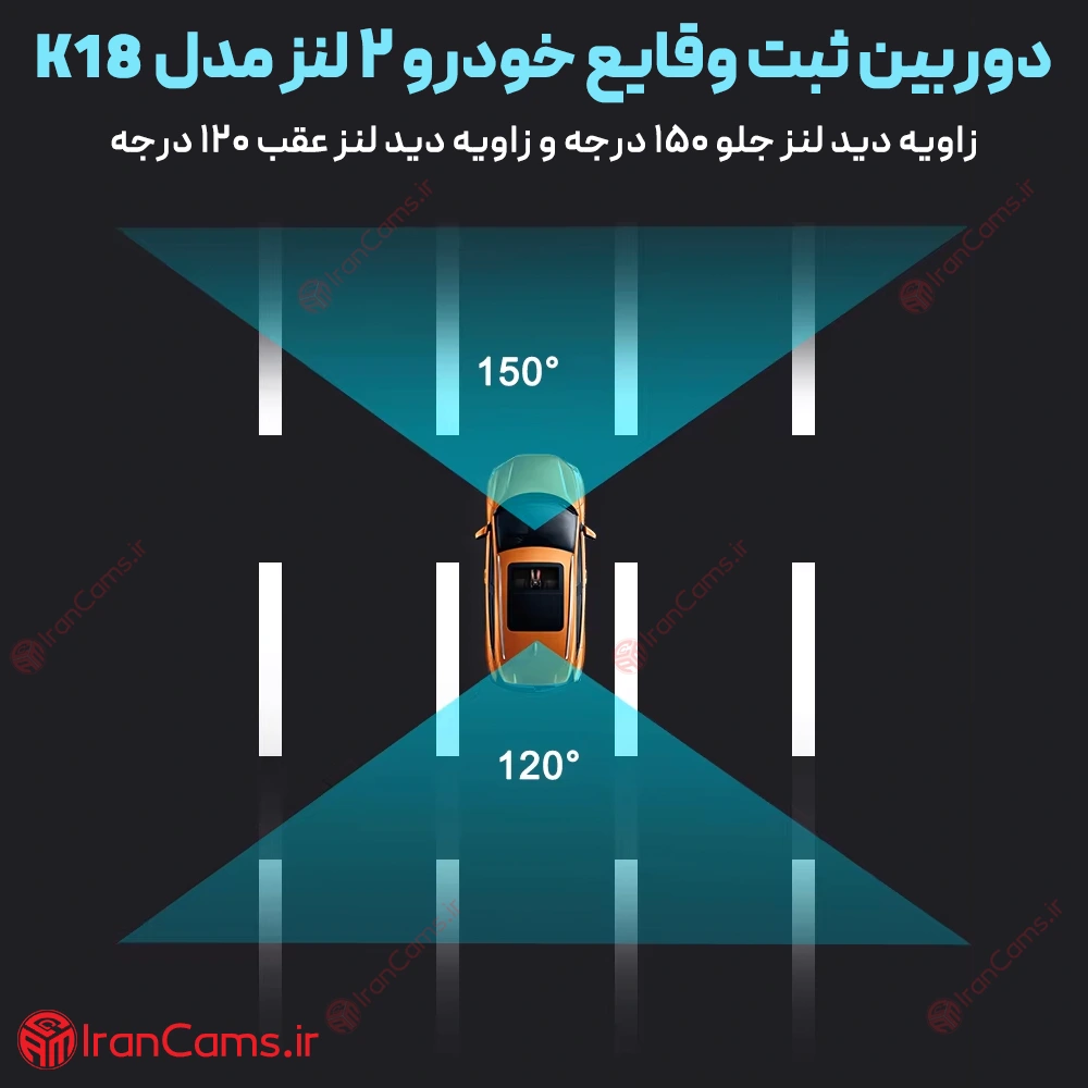 دوربین ثبت وقایع خودرو سیم کارتی 2 لنز مدل K18