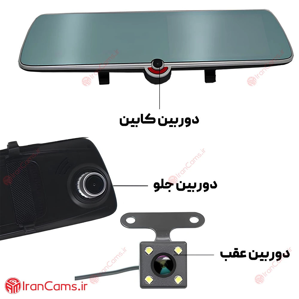 دوربین ثبت وقایع خودرو 3 لنز مانیتور دار آینه ای